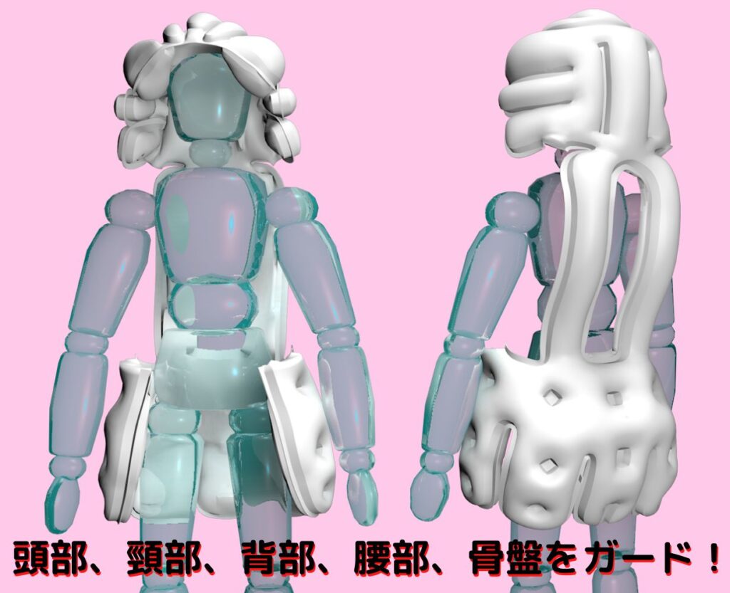 エアバッグは頭部、頸部、背部、腰部、骨盤の全周囲を守るように作動するため、大怪我を防ぎます。